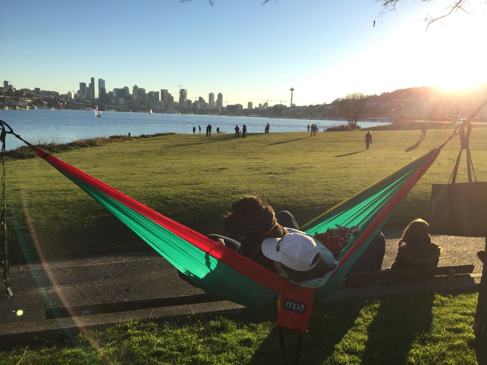 After hammocking in the parking lot with Leslie, I knew I needed to find a spot that would better suit my hammocking needs. Kruegel Park in Pullman is just that. Plenty of trees, a decent distance apart, it is the ideal place to string up and swing your problems away. Thankfully, Taite, Libby (not pictured) and I were able to hammock next to each other.