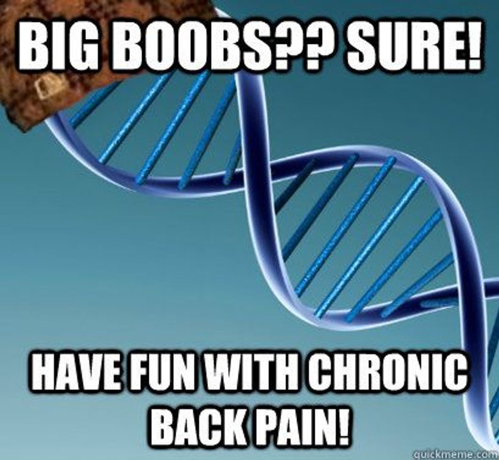 It's not a joke when we say we get the worst back and shoulder pain. Not only do we already have back pain from our bad posture due to being weighed down, but we also deal with the pain we get in our shoulders from where the straps are digging trenches. I almost have a hunch from slouching so much over the years. I feel the need to pop/stretch my back at least ten times a day. I even get back pain from thinking about getting back pain — that's how bad it is.