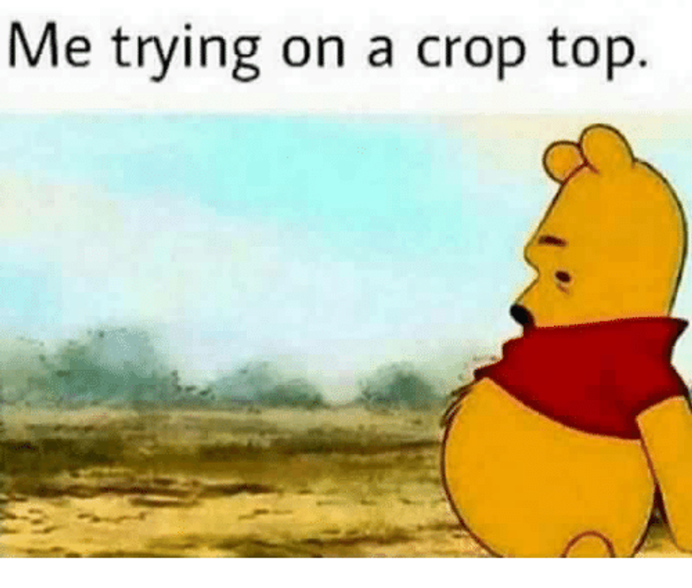 I don't completely mean that. There are cute tops, or maybe I've just come accustom to what I've had to settle for. Crop tops rarely look cute because they turn from a crop top to a boob sock. All the fabric for the "crop" gets used to cover all the "top," if you know what I mean. Tight fitting shirts become a major attention feeder. And any type of writing across the chest is just a HUGE no no.