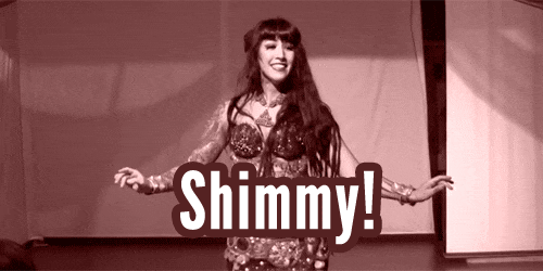 One of the basic moves in belly dancing is the shimmy. There are chest and hip shimmies with many ways to conduct your body. The purpose of a shimmy, not just to get in shape and show off your moves, is to make as much noise as possible. We wear coin belts, or "jingles," that vibrate together and create a chorus of metallic dancing energy you can experience only in a room full of shimmying belly dancers. It's secretly all of our favorite move because it's simple and it's fun.