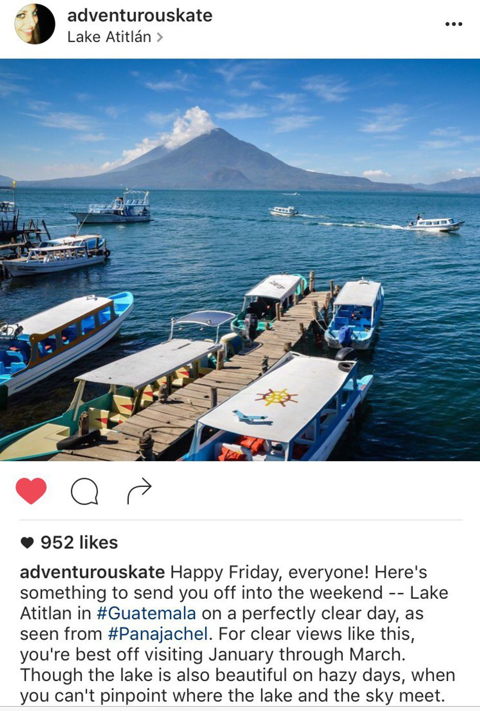 Solo female traveler Kate McCulley is well known for her blog, adventurouskate.com. At 26, she quit her job in order to explore and has done just that. While she is not on the move right now, she continues to update her Instagram page with a slew of pictures from her adventures, followed by a historical or story-lined caption.