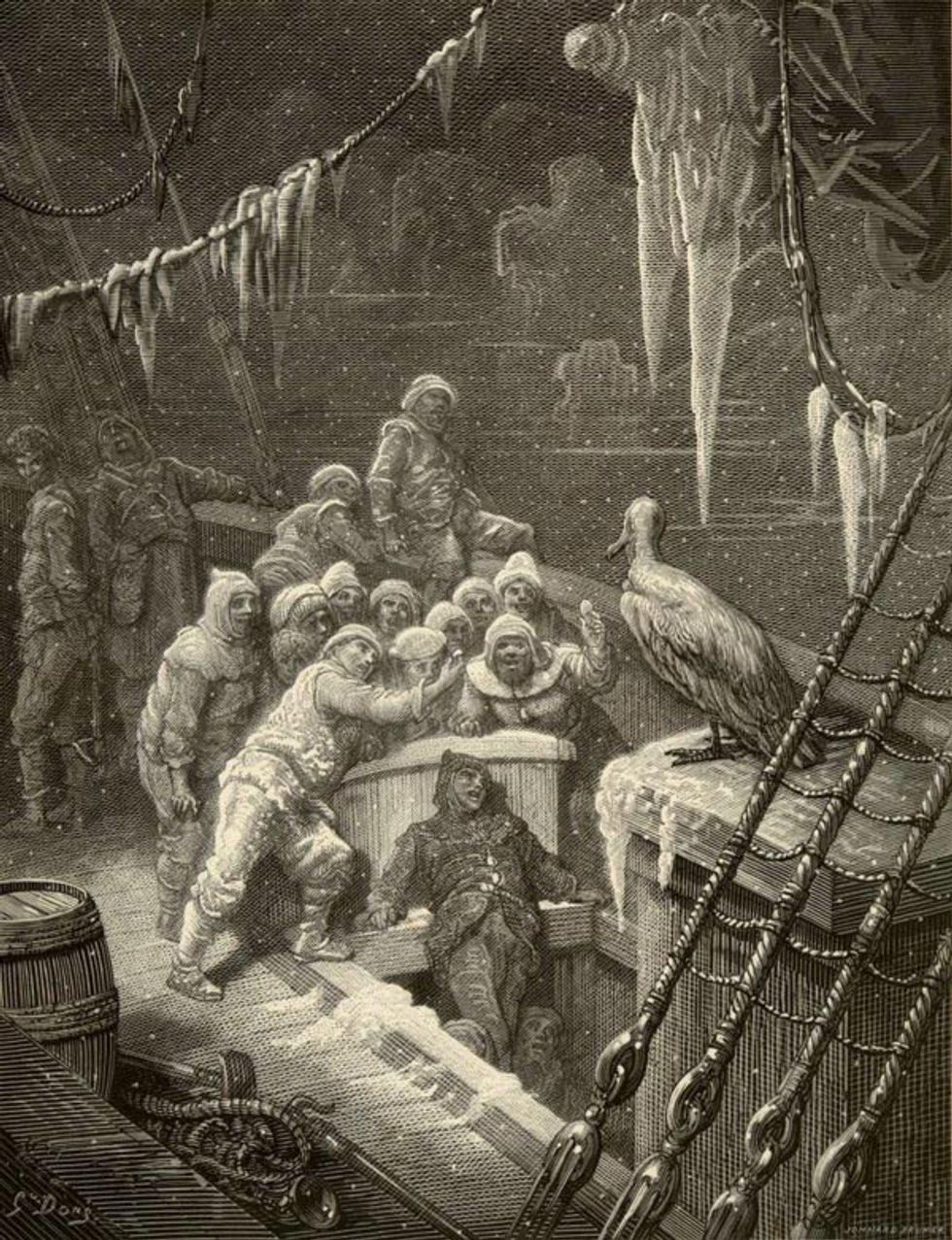 As an American observing this election, I feel like a passenger on the Rime of the Ancient Mariner. For those who don’t know what this is, I'm referring to an old poem about a doomed ship expedition that costed all but one sailor’s life.The sole survivor shot and hung an albatross around his neck.The crew dies one by one and the mariner watches and returns home a cold shell of himself. During this election, in real life, people one by one are being taken into the abyss of insanity that has turned into the cult of Trump.
