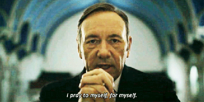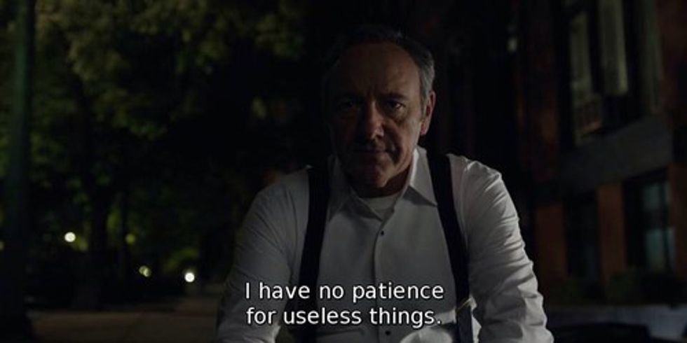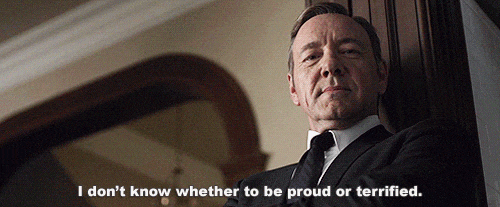 Through all the twist and turns of this year's election, I think that there is no better way to explain the election of Trump through some good old House of Cards GIFs. Frank Underwood's cynicism toward everything is something I think most of us share towards this year's election. Here are some highlights of the 2016 Election as told through House of Cards GIFs.