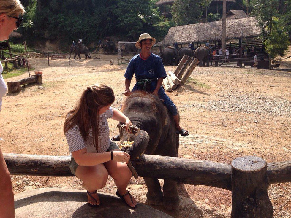 My love of elephants began in third grade when I had to do my first PowerPoint presentation about an endangered animal, I chose African Elephants. I learned how gentle the giant mammals are and how we as humans treat them so poorly. This was then furthered 10 years later when I visited and volunteered at an elephant sanctuary in Thailand. Some of these "sanctuaries" unfortunately are just tourist centers and do not have the elephants best interests at heart. It is really dangerous and damaging for elephants to carry people in carriages on their backs. The sanctuary in which I visited has Mahout's, an elephant career, who have one elephant that they walk, wash, feed, take care of and play with.