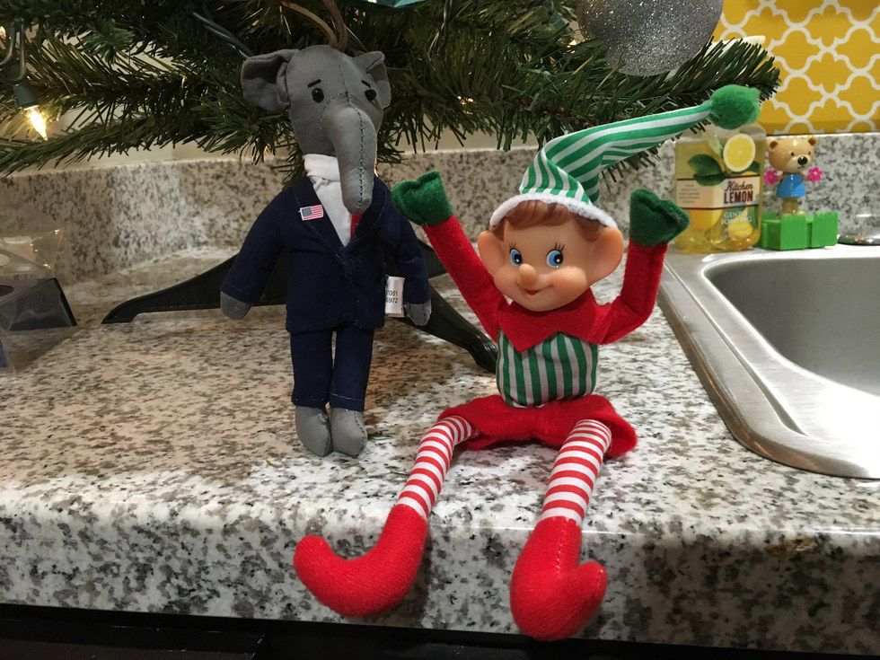 We also had a visitor-- a (knockoff) Elf on the Shelf.