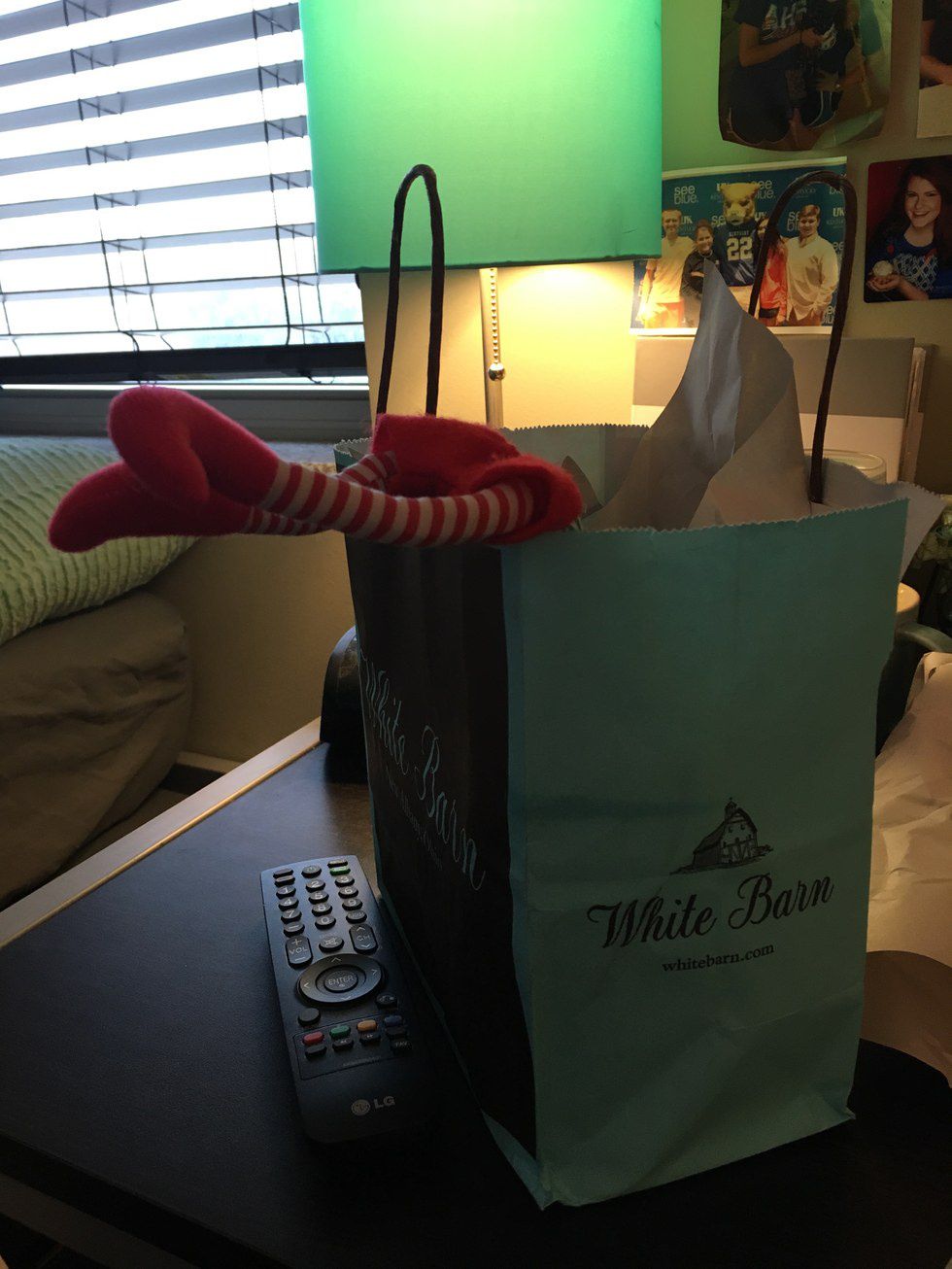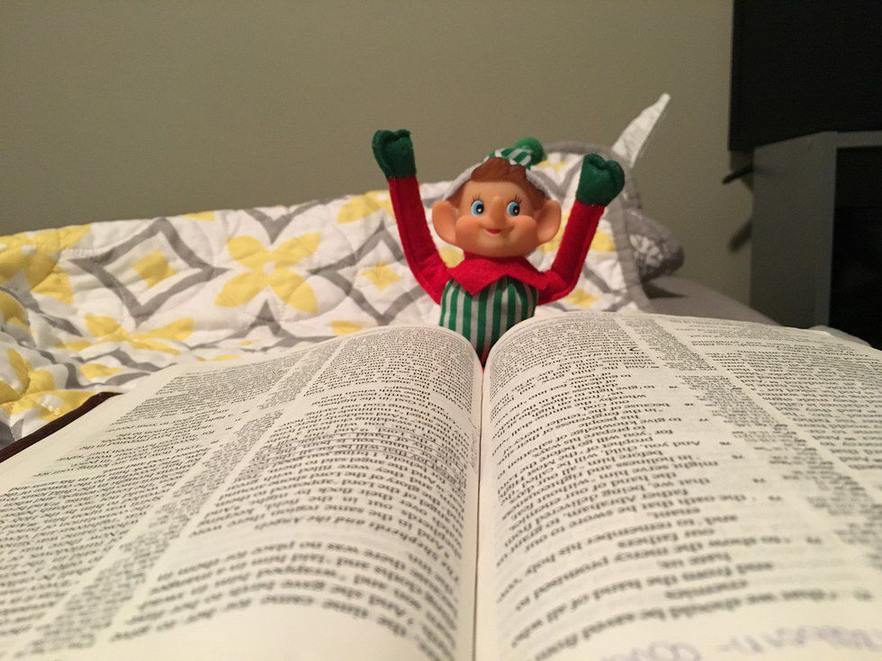 Though we're not great at doing it everyday, every once in a while we help the Elf have some new adventures in our dorm room.