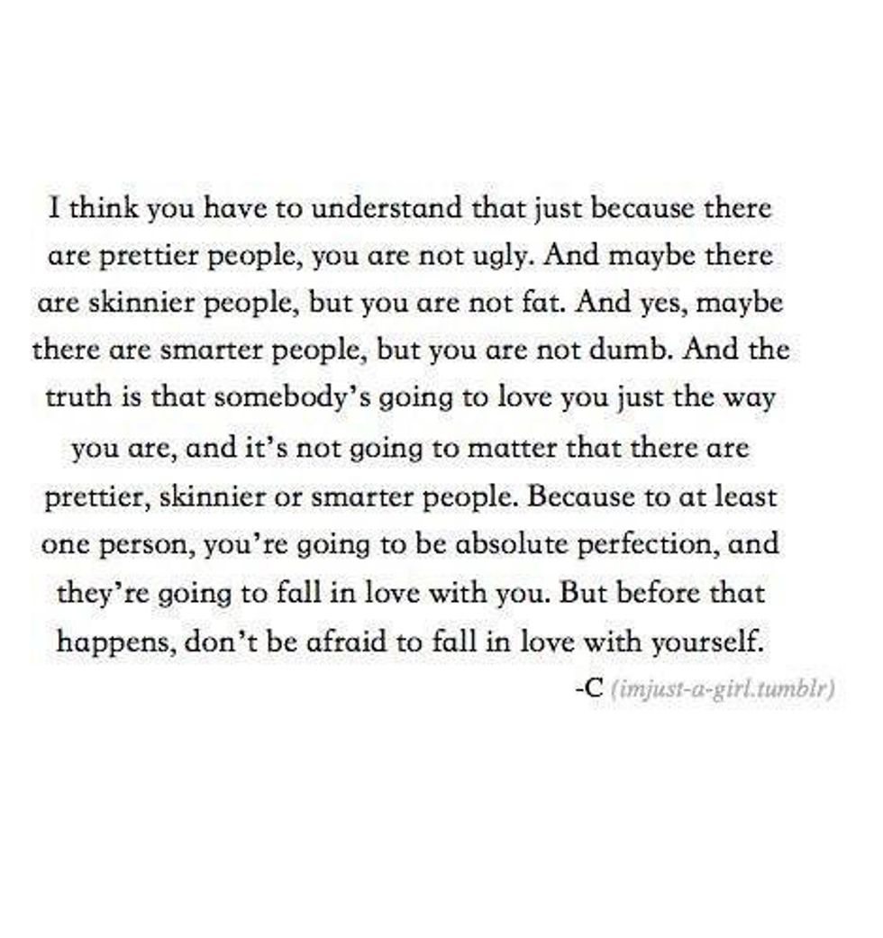 The quote ends with, "don't be afraid to fall in love with yourself." It's important for all of us as individuals to be in love with ourselves before we can even think about falling in love with anyone else.