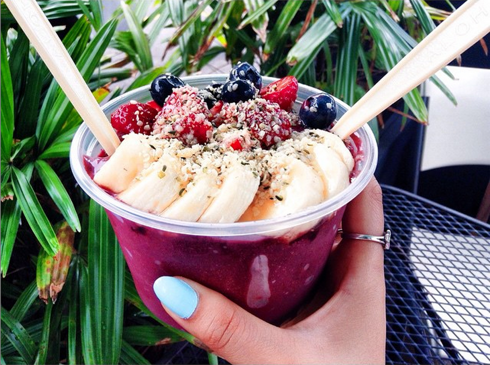 First of all, acai is extremely good for you. It's a “superfruit” which means it is full of vitamins and antioxidants that protect you from sickness and provide you with energy. Acai bowls are also low in calories, full of fruit and protein, and best of all, they are extremely filling.
