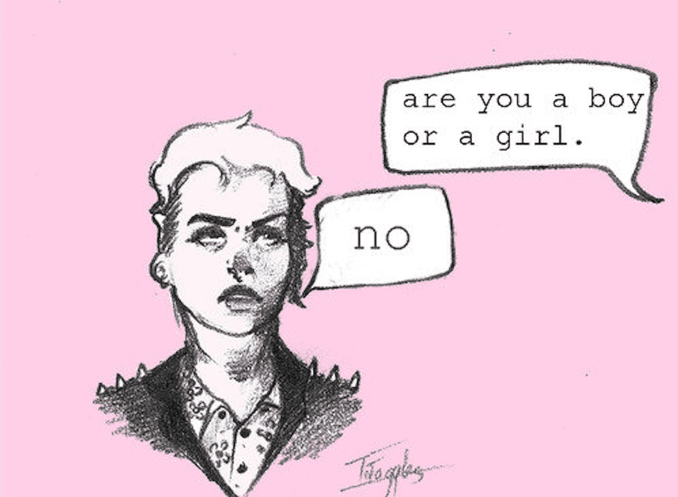 But here’s the thing: when I’m not identified as female, which is incredibly rare, I’m read as male. And while I have the deepest love and respect for all trans men, I'm not one of them. Being read as male is in one way much better than being read as female, because at least I’m not being seen as cisgender, but it's also not my identity. No matter what I do, my appearance never causes people to pause and reconsider how they identify me, or better yet ask me up front how I identify. While I would love it if I could give off an invisible radio signal that I'm non-binary, that's just not a realistic goal.