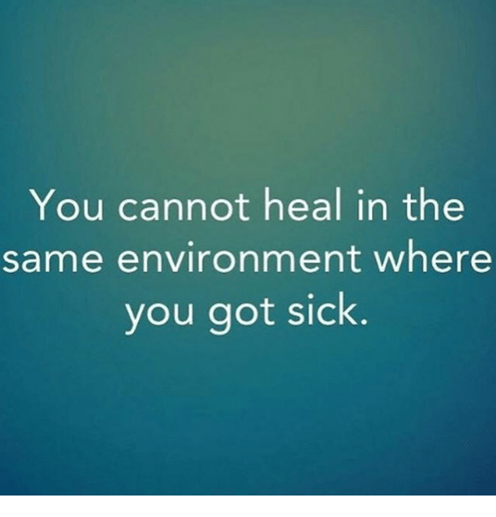 You cannot heal in the same place, by the same people, who hurt you. If you're spending your finite and precious energy on people and tasks that just drain you, you're not using your energy as you best could: to fully empower your own self so you can go out and change your own corner of the world.