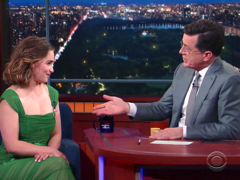 “I did it [a real nude scene] before and people liked to talk about it, so I just wanted to come out and do an empowered scene that wasn't sexual. It was naked, but it was strong," Clarke said in an interview with Stephen Colbert on "The Late Show."