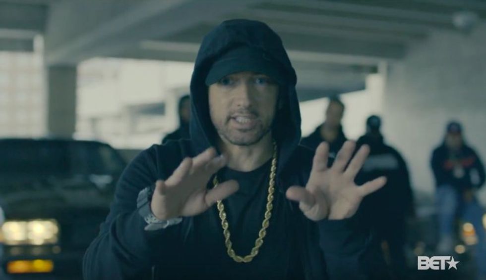 Between calling out Trump for ignoring important racial issues, to expressing his support for the American military, and uniting white and black anti-Trump supporters, Eminem does so with such bravado and stunning intent. This was the Eminem that America needed, an Eminem that shows that the white race is not as ignorant as the leader of the free world proposes himself to be. Of course, Eminem finishes with "we love our country but we f***ing hate Trump" while staring ominously into the camera of American viewers.