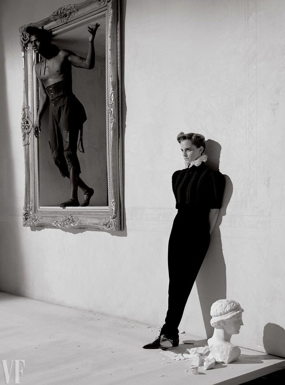 Hey, check out this topless male and not-topless Emma Watson in the same photo shoot release. Interesting.
