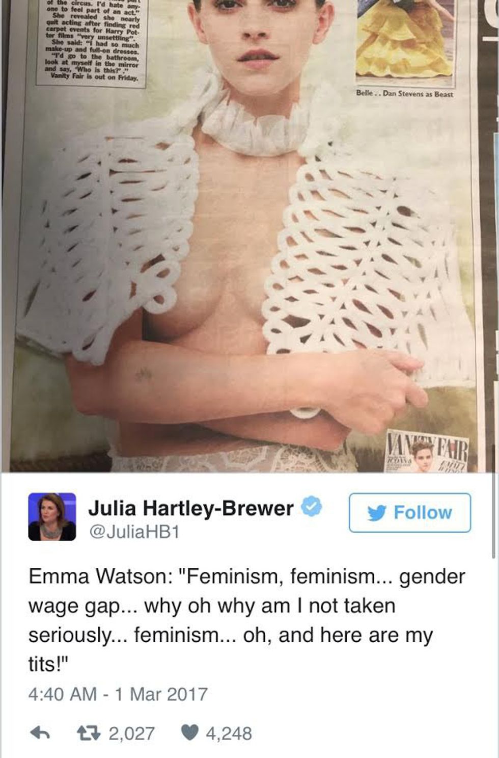 Emma Watson is an intelligent, outspoken young woman who is a powerful feminist and role model for girls. Right?