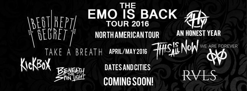 The "Emo Is Back" tour is finally here! There's eight amazing bands touring this April and May! This entire tour would not be possible without Best Kept Secret, thank them for the amazing live music coming to a venue near you. What better way to get amped up for a sick tour than listening to all the bands you're going to see? I have asked each of the bands to describe their stage performances and what they love about playing shows and touring! Check out their answers along with their music below. This is the one tour you don't want to miss. Be sure to follow @emoisbacktour on Twitter and Instagram for tour dates!