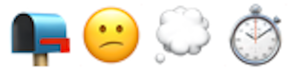 6. Open Mailbox With Lowered Flag, Confused Face, Thought Balloon, Stopwatch