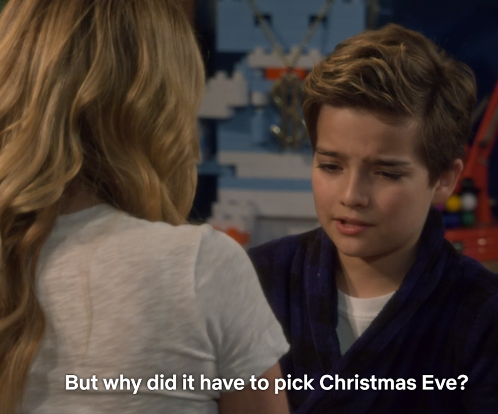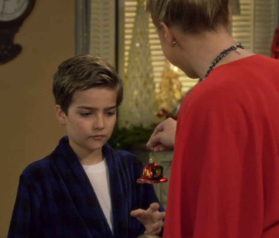 Look at those sad eyes- this part will have you bawling. DJ tells him she had a hard time around the holidays when her mom died and suggests watching home videos. There is never an easy answer to grief, not even in this happy-go-lucky show, but she offers a way to cope.