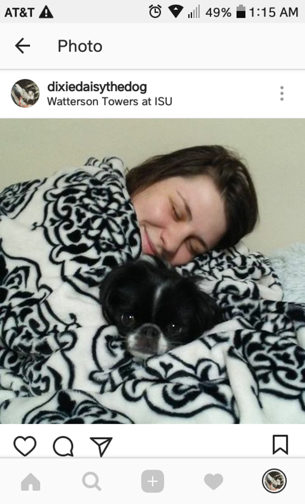 Luckily, with my research, I found out I could get a letter from my doctor basically prescribing Dixie to me. And I had to go through an extensive process to get her approved to live on campus with me, but that all turned out to be worth it. Having an emotional support animal is the most consistent, rewarding thing in my life