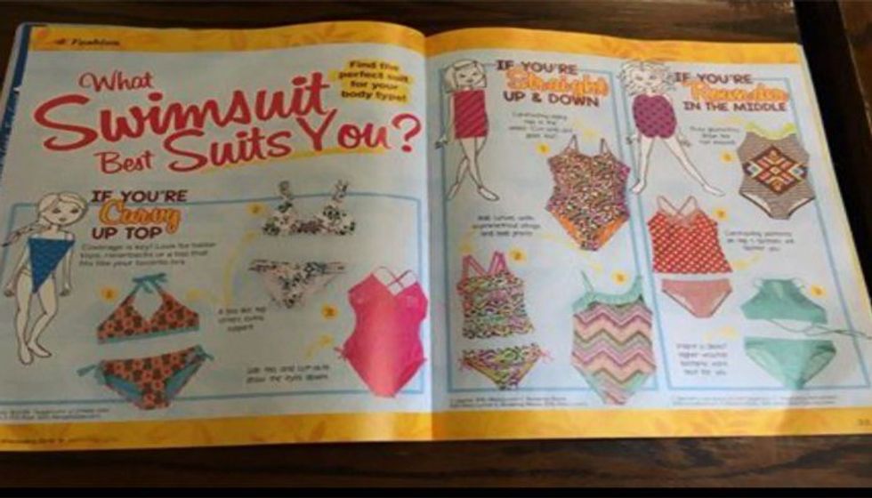 A recent article from Discovery Girls magazine featured an article titled “What Swimsuit Best Suits You?” and then defined different body types and the swimsuit styles that best ‘fit’ that shape based on drawing the eyes away from their curvy areas. There’s been kickback both on Twitter and Facebook, especially from mothers, in response to the content in this article.