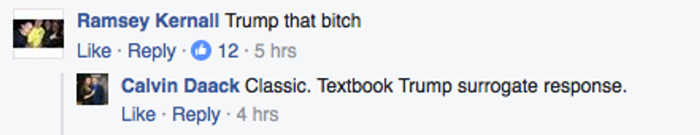 Late that night, my sister texted me after reading the blood bath that I was an idiot for engaging. She was right. I wasn’t going to talk any sense into them. They wouldn’t listen to me. I’m only fueling their fire. It’s no different than when someone fires off on my statuses or article shares with racist memes that add nothing to the dialogue I’m trying to start. Mitch, the guy who posted the original status, is very intelligent and amicable, and I didn’t think he was trying to troll. He was simply stating his opinion. However, he left himself wide open for that comment, and being bored at work, I took my shot. I thought it would start a dialogue and wouldn’t be seen as a personal attack. Mitch understood where I was coming from and what my intentions were (he would later disavow Trump, stating that he doesn’t support anyone in this election and believes we’re doomed either way). Unfortunately, his constituents were not interested in having an intelligent dialogue. They were more amused by using sexist and hateful slurs, posting bigoted memes, and repeating themselves ad infinitum.