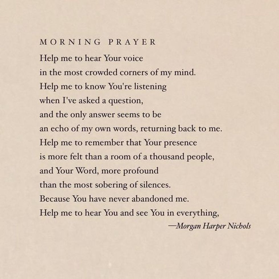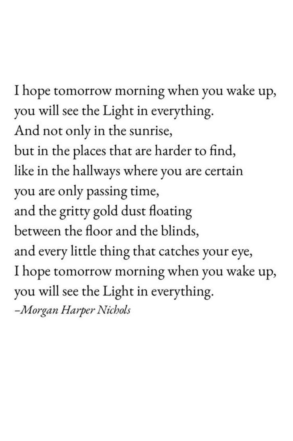 As I scrolled through my Pinterest feed several months ago, I noticed more and more pins of the same type showing up, all little thoughts and poems that encouraged and uplifted me. After reading a few, I noticed that they were all signed by the same author, Morgan Harper Nichols. Because they caught my eye, I searched for some more poems to read, and as I did, they spoke to me more and more. Some are written as prayers, from her to God, while others are short letters written to people she sees in passing. I hope that these thoughts, poems, and prayers inspire you the way that they inspire me.
