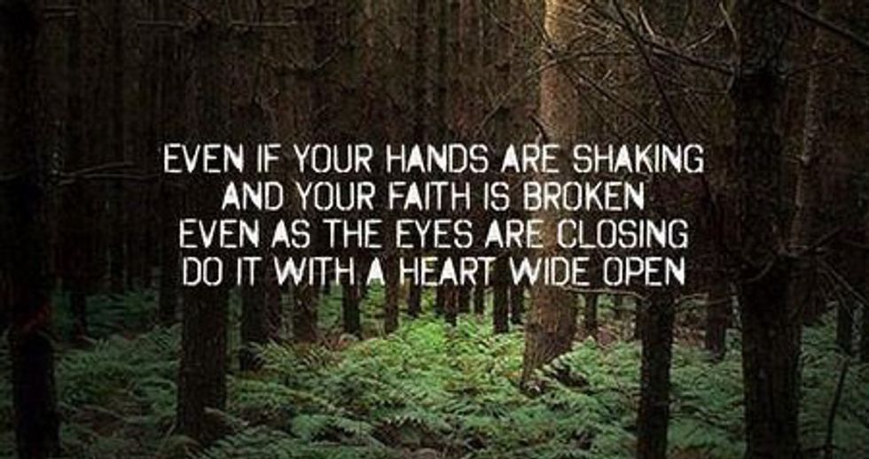 7. John Mayer sings, "Even if your hands are shaking, and your faith is broken. Even as the eyes are closing, do it with a heart wide open."