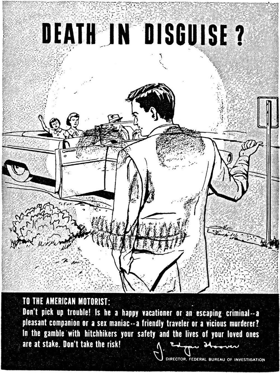 Over time, cars have become cheaper and lasted longer. It's also much harder to hitch a ride when cars are whizzing past you at 60 miles per hour on a four-lane highway as opposed to meandering through a small and friendly town. Additionally, some states, including New York, Nevada, New Jersey, Pennsylvania, Utah and Wyoming, actually ban hitchhiking. There was also a villaInization of hitchhikers from law enforcement agencies, such as this FBI poster put out in 1973, which advertised hitchhikers as "Death In Disguise."