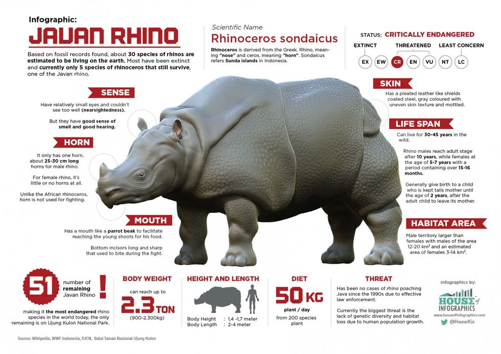 The Javan Rhino is just one of the many Rhino species which are on the verge of extinction. While there are organizations working hard to help save this species, it is education that will help all species in the long run. In a time where species are vanishing off the earth at an alarming rate it is so important that we all aware of the consequences that human actions have on the environment.