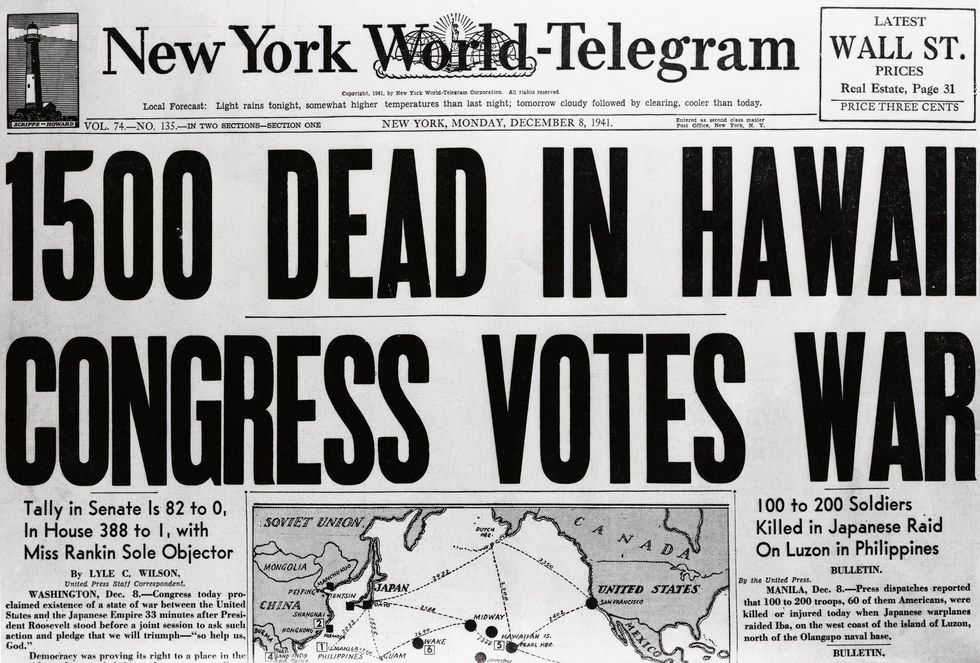 On the morning of December 7, 1941, an American Naval Base on the Island of Oahu was attacked by hundreds of Imperial Japanese fighter planes. The attack lasted about 2 hours, enough time for the Japanese to destroy more than 300 planes, 20 vessels, and 8 battleships. Over 3,000 American soldiers were either killed or wounded in the attack, leaving America as a whole terrified and confused. President Franklin D. Roosevelt - who was warned that Japanese forces were suspiciously focused on Hawaii 3 days before the attack - and Congress declared war the following day, officially entering World War II. After several years of attempted isolationism from the growing tension in Europe, Asia, and Africa, the United States was dragged into the fray. Needless to say war is hell! Men were sent away from home to fight, women entered the work force in numbers the nation hadn't seen before, and even children were asked to contribute to the war effort by collecting scrap metal and buying war bonds.