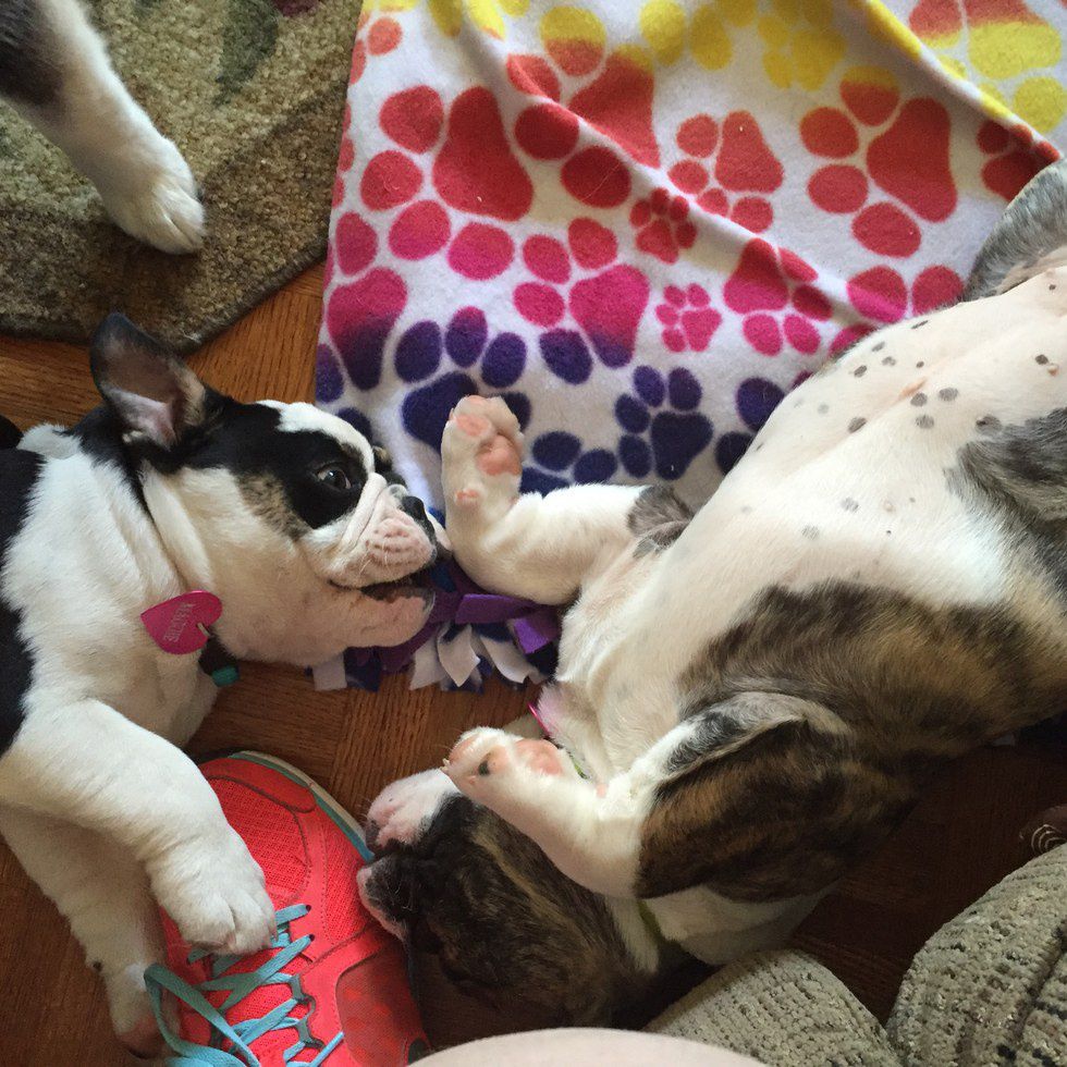So what exactly is it like to live with two bulldog puppies and a little bit older Pomsky you ask? Well, it's not easy, I will tell you that. We thought it was going to be a good thing to have two puppies from the same litter in the same home, and for the most part it was a good thing but at other times it was like hell because all they did was fight and bite each other. It would be quiet for a long time and then you hear a blood hurting cry come from one of the pups, and most of the time it was coming from Zoey.