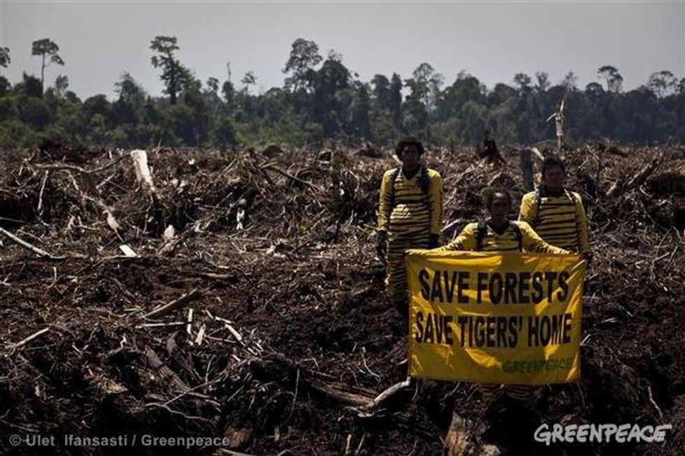 70 percent of agricultural land is used for rearing farm animals. Much of this grazing land once held valuable natural habitats such as rain-forests. When rain-forests are destroyed to make room for animal agriculture, all the animals in the forest are displaced, leaving everyone from tigers to monkeys homeless. This then causes issues in near by villages as the animals tend to roam searching for food and a home, and instead find villages and people. This is what happened in the Amazon, as 70 percent of Amazonian deforestation is because of animal agriculture. Deforestation of rain-forests also results in more greenhouse gas emission, as the trees that store carbon release it as they are chopped down. This can then lead to large amounts of acid rain and other environmental issues in the area.