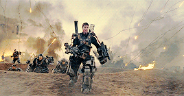 Unlike most anime adaptations, "Edge of Tomorrow" introduces its own characters. Major William Cage is our protagonist, taking the place of private Keiji Kiriya. Instead of being a recruit off the bat, we find out through the first few minutes of the movie that Cage is in fact an officer in the Media Relations department of the UDF. He was quickly demoted after declining to provide media coverage for a large assault on France, forcing him to then fight on said battlefront as an inexperienced private.