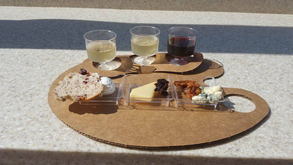 -Karst Cave-Aged Cheddar Cheese served with Fig Compote paired Kurt Russell's Gogi "Goldie" Chardonnay, Sta. Rita Hills
