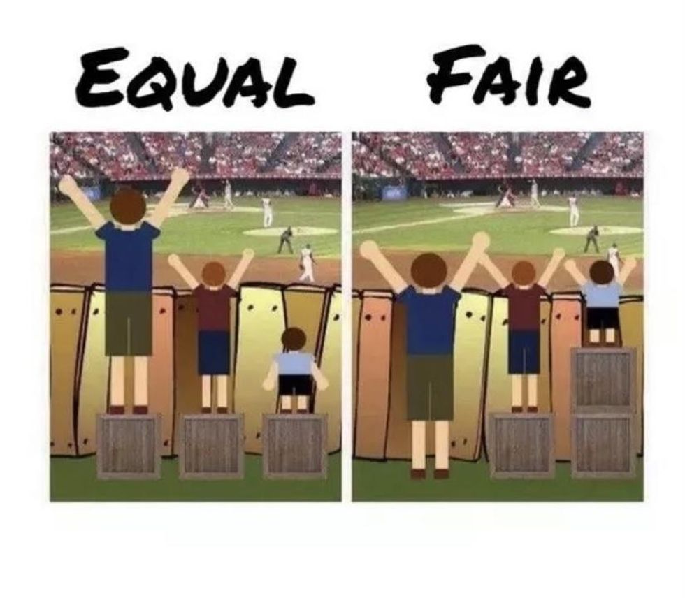 For the past year I have been thinking about what it means to be a woman and what this whole gender equality thing means to me. I think that being "equal" is the wrong term. I do not want to be compared to men, because I'm simply not a man. Comparing men to women is like comparing oranges to apples. How can you compare the two when we're just bottom line different? This picture is forever stuck in the back of my mind, because it shows that just because we are treated "equal" it doesn't mean that it's fair. I've experienced this first hand, and the harder I tried to be equal to men, the more it was hurting me. At the end of the day, what it takes for me to succeed is going to look different than others-- and specially men.