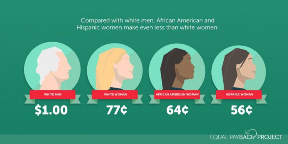 Not only is this discrimination against women by paying them less for essentially doing the same work, the wage gap grows even father based on the woman's race.