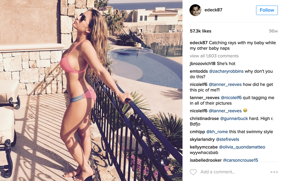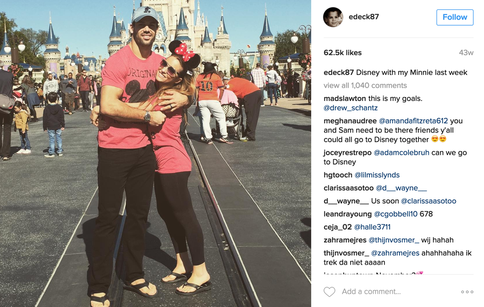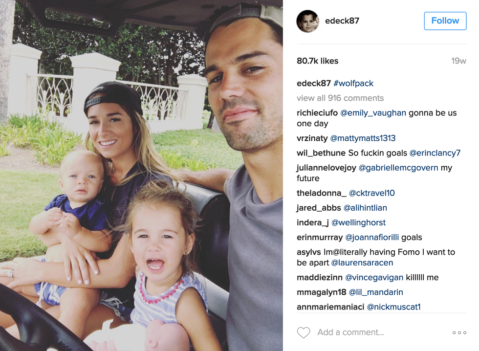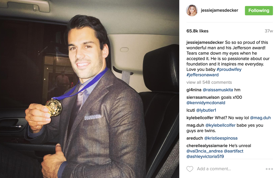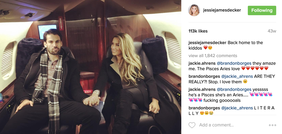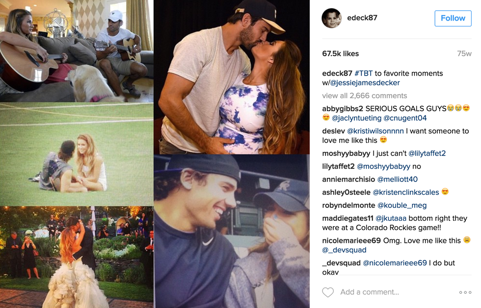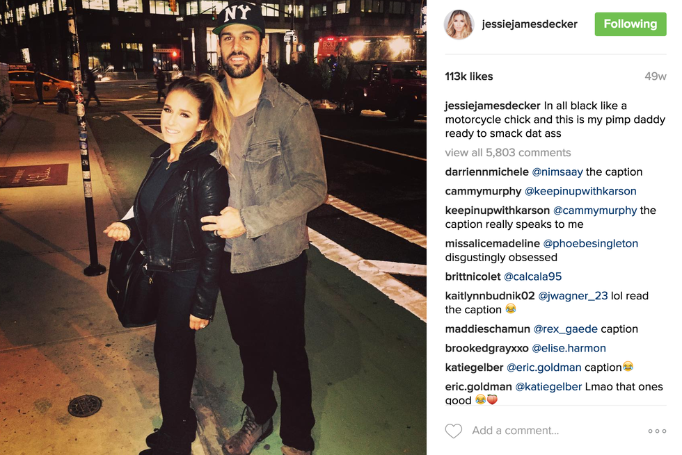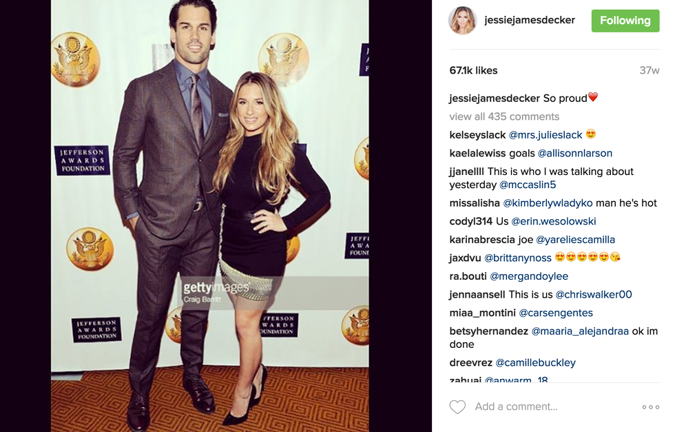 The New York Jets wide receiver, Eric Decker, and country singer-songwriter wife, Jessie James, are the ideal perfect couple. If you follow them on social media, you understand that they both have a very strong support for one another for what they do in their lives. They pretty much live through their social media is what it looks like, and I'm not complaining. They were first obsessed over by their reality tv show "Eric and Jessie" (2013-2014). The couple now has two children: Daughter (oldest) Vivianne Rose, and son (youngest) Eric Thomas II.