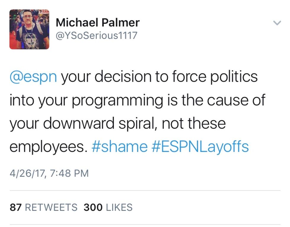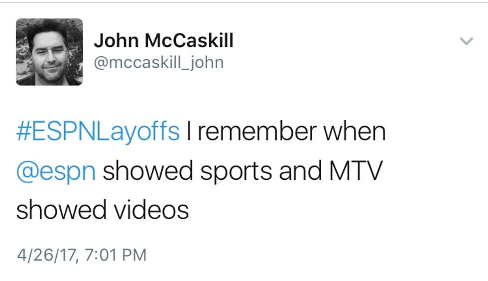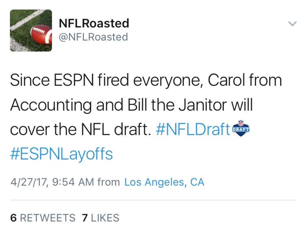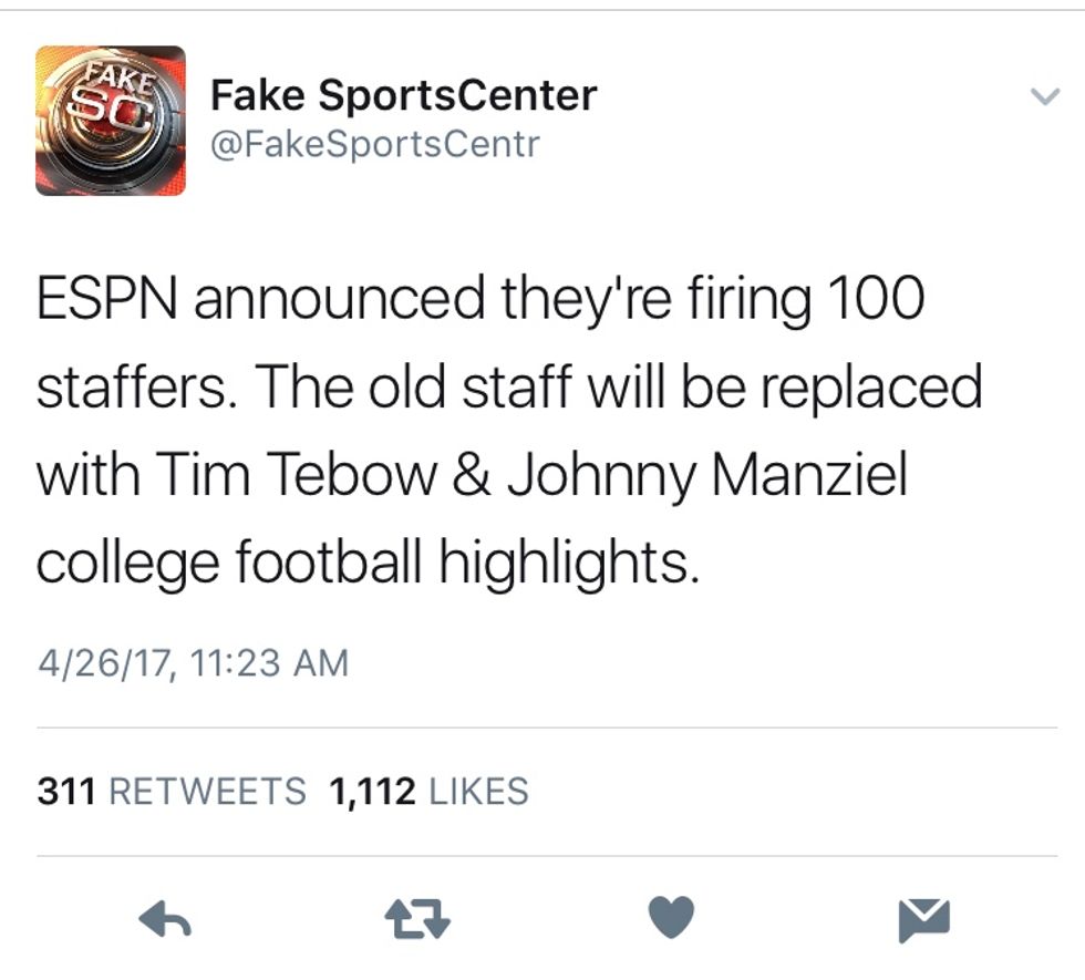The most large and powerful outlet in the sports media industry laid off 100 staffers Wednesday, April 26. ESPN let go well-known staff, including NFL reporter Ed Werder, former NFL quarterbacks Trent Dilfer and Danny Kanell, former NBA player Len Elmore and many more. The network has seen a decline in viewers as people are going elsewhere to get information on sports. Although the laid off staff tweeted appreciations to the network for their many years, many fans took to twitter to hash out their anger and confusion. Beloved reporters and journalists are now a memory to ESPN.