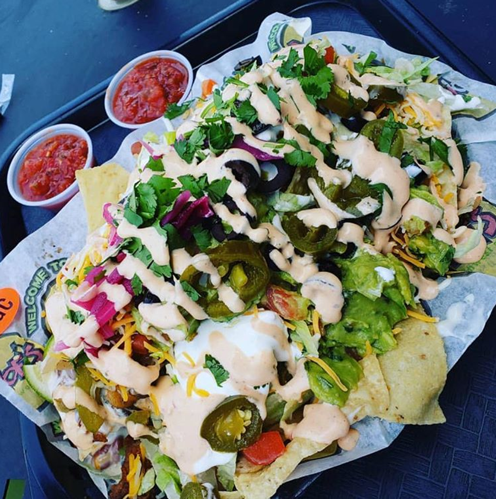 Moe's Southwest Grill has many vegan options; all you have to do is substitute tofu for meat and hold the cheese and sour cream or replace them with grilled veggies in tacos, burrito bowls and stacks. Other vegan substitutes include black beans, guacamole, salsa, etc.