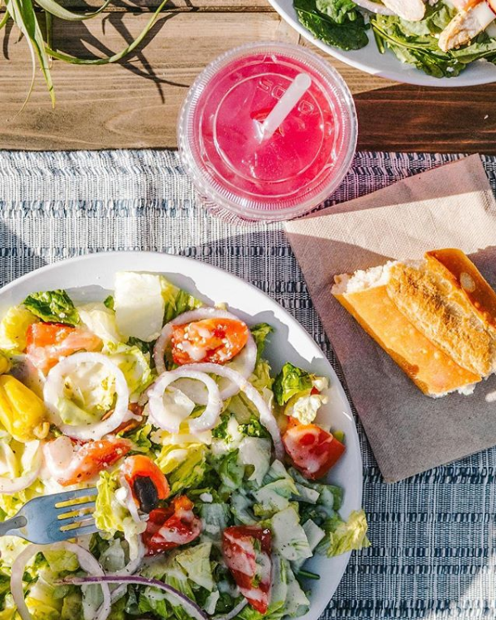 Try the Mediterranean Veggie Sandwich, Tomato Mozzarella Flatbread, Black Bean Soup, Soba Noodle Broth Bowl with Edamame, Greek Salad (pictured above), etc. I promise you won't regret it!