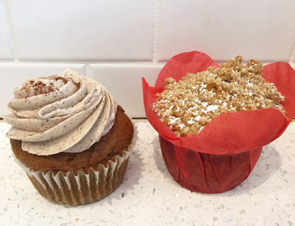 Pumpkin Spice Latte Cupcake ($3.00):This savory, made from scratch, pumpkin cupcake is topped with a spiced buttercream frosting. The cupcake is filled with spices and coffee, while the fluffy buttercream is mocha flavored with a hint of spice.