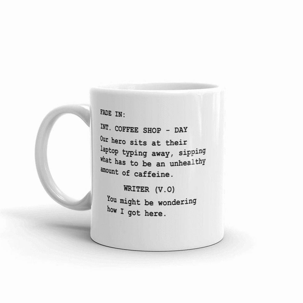 This mug by HashtagDressed on Etsy is perfect for the screenwriter or movie fanatic in you! It comes with a witty saying in a script-style format, but you can customize this and have your own saying put on to it. It's also available in different sizes.