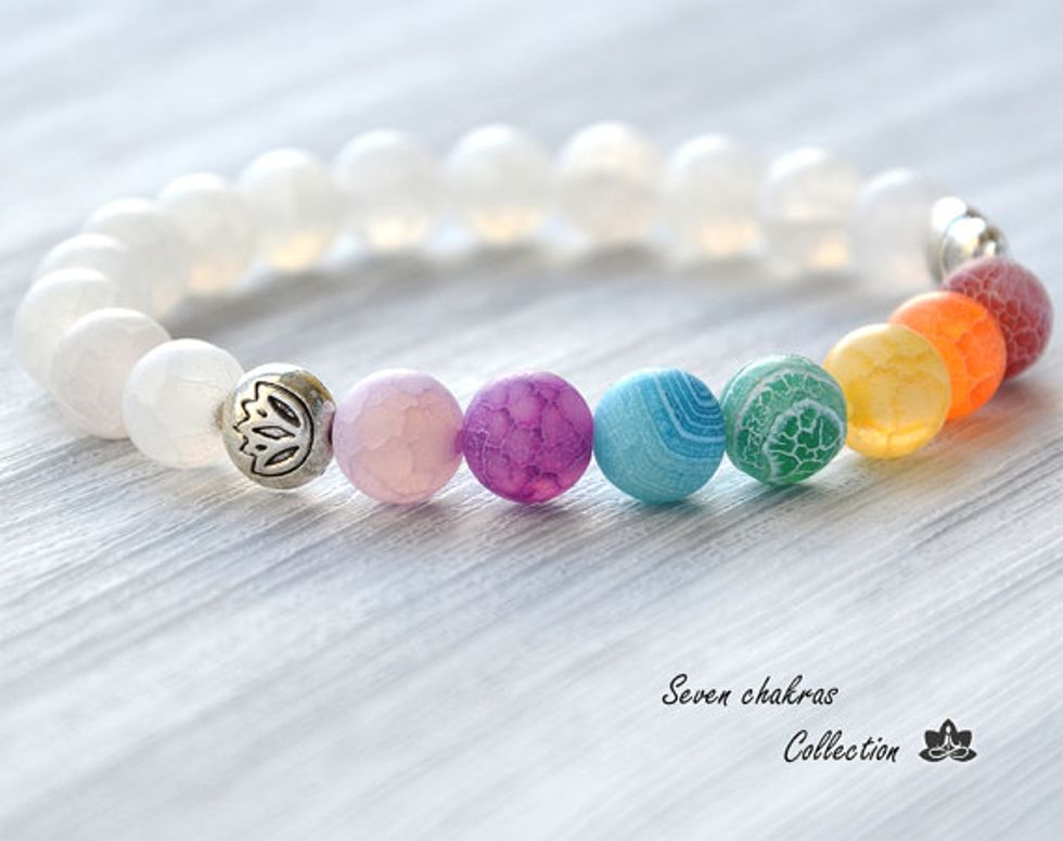 This chakra bracelet is a gorgeous way to remember what grounds you, what lifts you and what inspires you. I love the white beads and it is great for stacking! $21.70