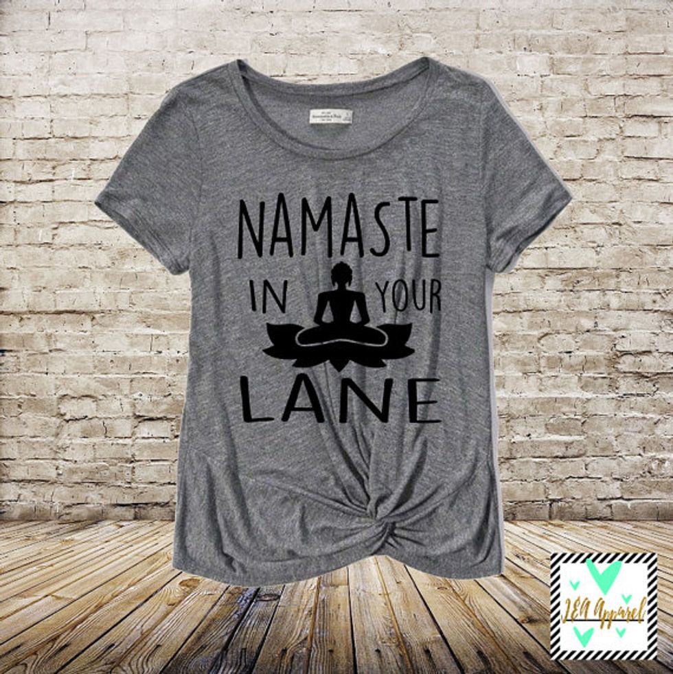 I teach a yoga and stretching class and the people in my class always get a kick out of my "Namaste in your Lane" ! It's a very light cotton so it's very breathable. $16.00+