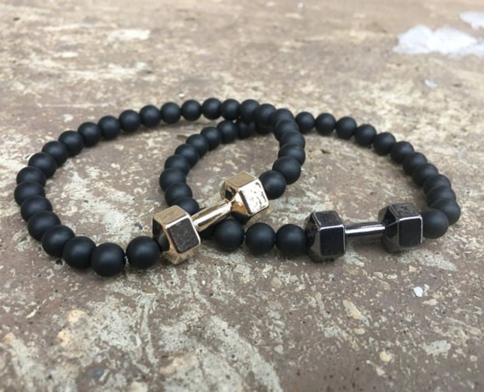 "Fitness Dumbbell Bracelet Set" is cute to stack with other bead bracelets. It is just a cute little detail to add to your regular bracelets. Only $14.99.