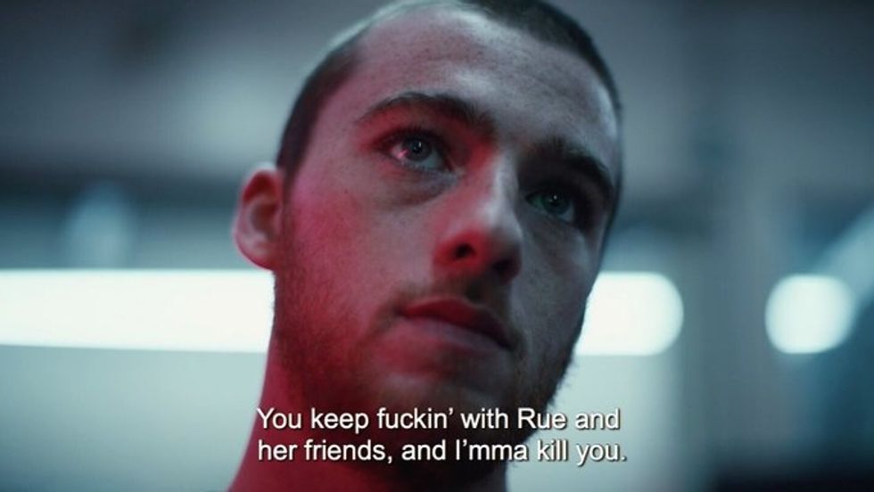 2. Same thing goes for when Rue's mother was reading that letter at the AA meeting. We see Rue and her sister sitting in the room, but far apart from each other. Why is that? Maybe because Rue isn't actually there.