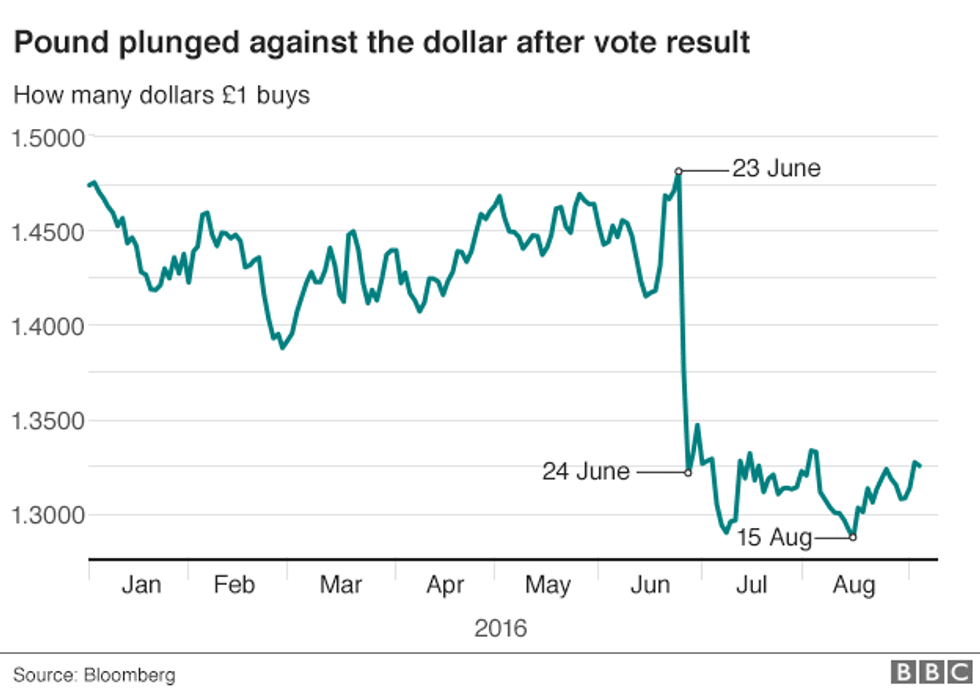 Leaving the EU will also have unforeseen consequences. The British pound is a freely traded currency. As such, the financial market freely determines its value relative to other currencies around the world. The sterling pound has traditionally been the most highly valued currency in the world, even higher than the dollar. Yet that measurement can and does change on the fly for a shit load of reasons, and global investors are notoriously fickle in the valuation of currencies. After the June referendum, the pound fell to its lowest levels in years, nearly falling to an even £1:$1 parity. It’s regained some value since, but such a shock can easily happen again if the British government fails to come up with worthy free trade agreements that will compensate for stepping out of the EU.