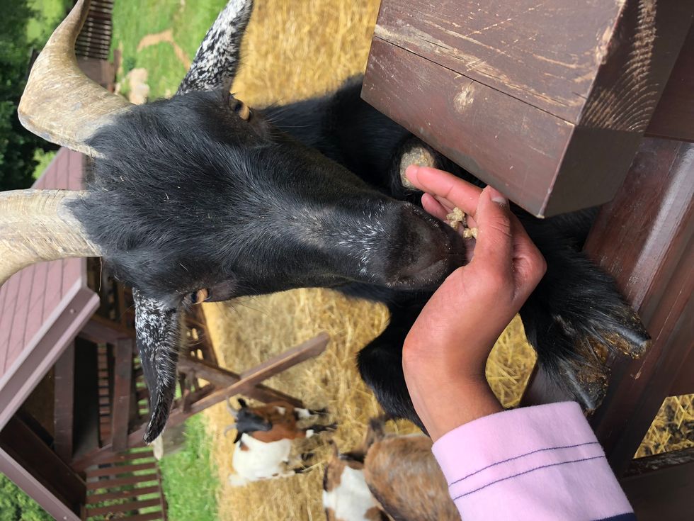 Feeding Goats At A Rest Area On The Way To Prague