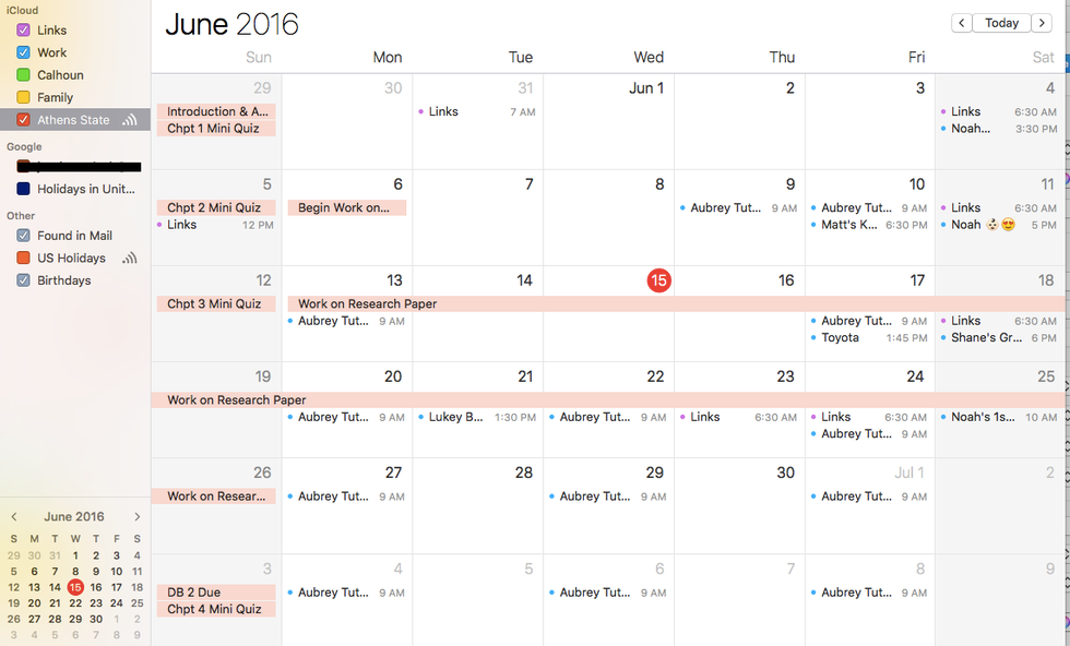 At the being of every semester, take all of those syllabi that usually get thrown away, shoved in the bottom of your bag, or otherwise forgotten about, and use them to create a game plan. I use the calendar app that comes pre-installed on all Apple devices. The app is simple to use and the calendar syncs between all my devices. No matter where I am as long as I have my phone, laptop, or iPad I have access to my calendar. Take the dates listed on your syllabus and put them into your calendar. You can use any calendar app or a planner with colorful pens. Just make sure you pick something and stick to it!