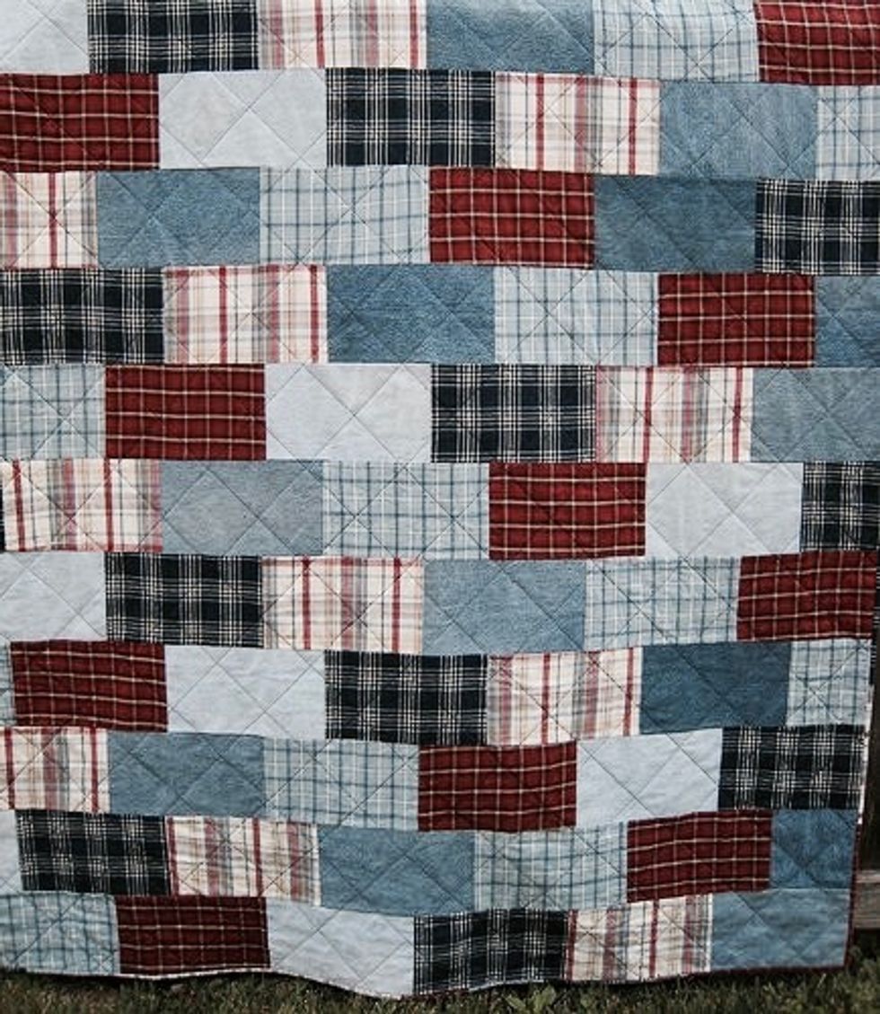 - Checkered blankets and old T-shirt quilts warm gray couches