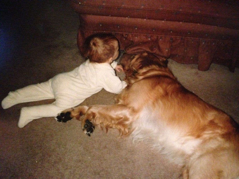 When I was born, my parents had a two-year-old Golden Retriever named Avery. Let me tell you, he was huge, like alpha male, biggest one in the litter, huge. Put him beside a tini-tiny newborn like I once was and he basically was a horse. Anyways, Avery was my big brother. We were inseperable. Anywhere he was I wanted to be right there with him. He would watch over me, cuddle with me, and once I could stand and walk he would be right there for me to hold onto. Yeah, I give Avery credit for teaching me how to stand and walk. I'm pretty sure my dad does, too. Never once did Avery hurt me, or even think about hurting me. He was a gentle giant.